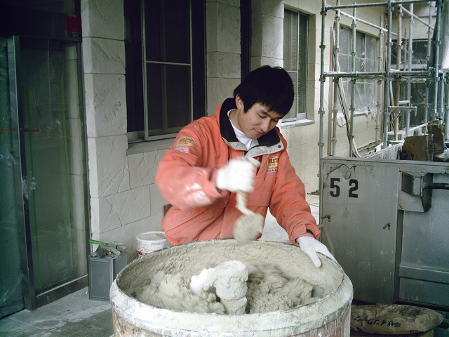 今年1月、入社しました工務スタッフ、潤太郎クンです。若干21歳!! すでに壁を塗っているらしい。。。。 彼は、富永の後輩で、野球部出身。 現在は、少年野球のコーチをしています。