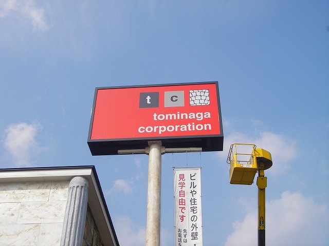 今日は、看板の照明の電球が切れたため、作業員さんに取替えに来ていただいたのですが・・・。