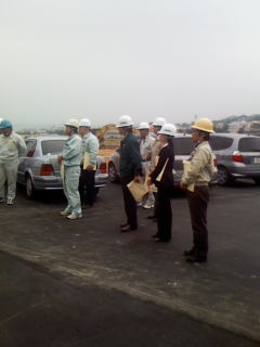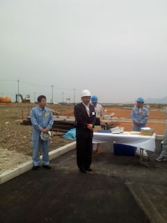 午前中にショールームの壁を作成中の技術主任T氏と管理人Oが電話で
